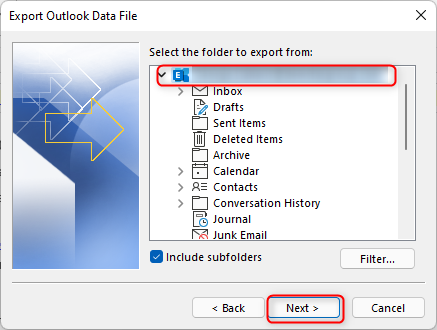Export and Import a PST file from and to Outlook 365 Client