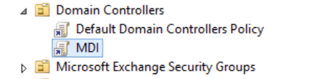 From the Domain Controller open the Group Policy Management console and find the container of the Domain Controllers. Create (or edit an existing one) a new Group Policy (I named it MDI) and assign it under the Domain Controllers container.