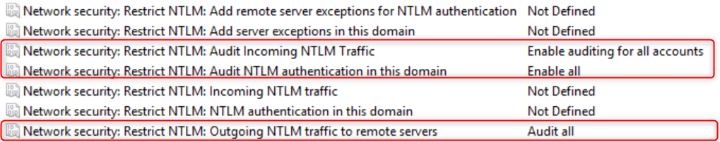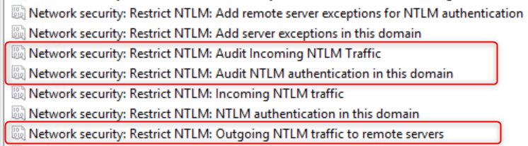 The NTLM settings that need to be modified are in Computer Configuration > Policies > Windows Setting > Security Options :